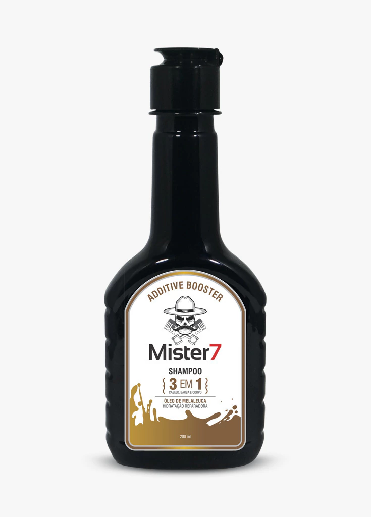Shampoo Additive Booster 3 em 1 para cabelo, barba e corpo combina em um único produto os benefícios da limpeza e da hidratação para os fios e para a pele. Enriquecido com Óleo de Melaleuca (Tea Tree) que é um adstringente natural, proporciona vitalidade e limpeza além das suas poderosas propriedades hidratantes e nutritivas para deixar seus cabelos e sua pele limpos, hidratados e macios com muita praticidade.